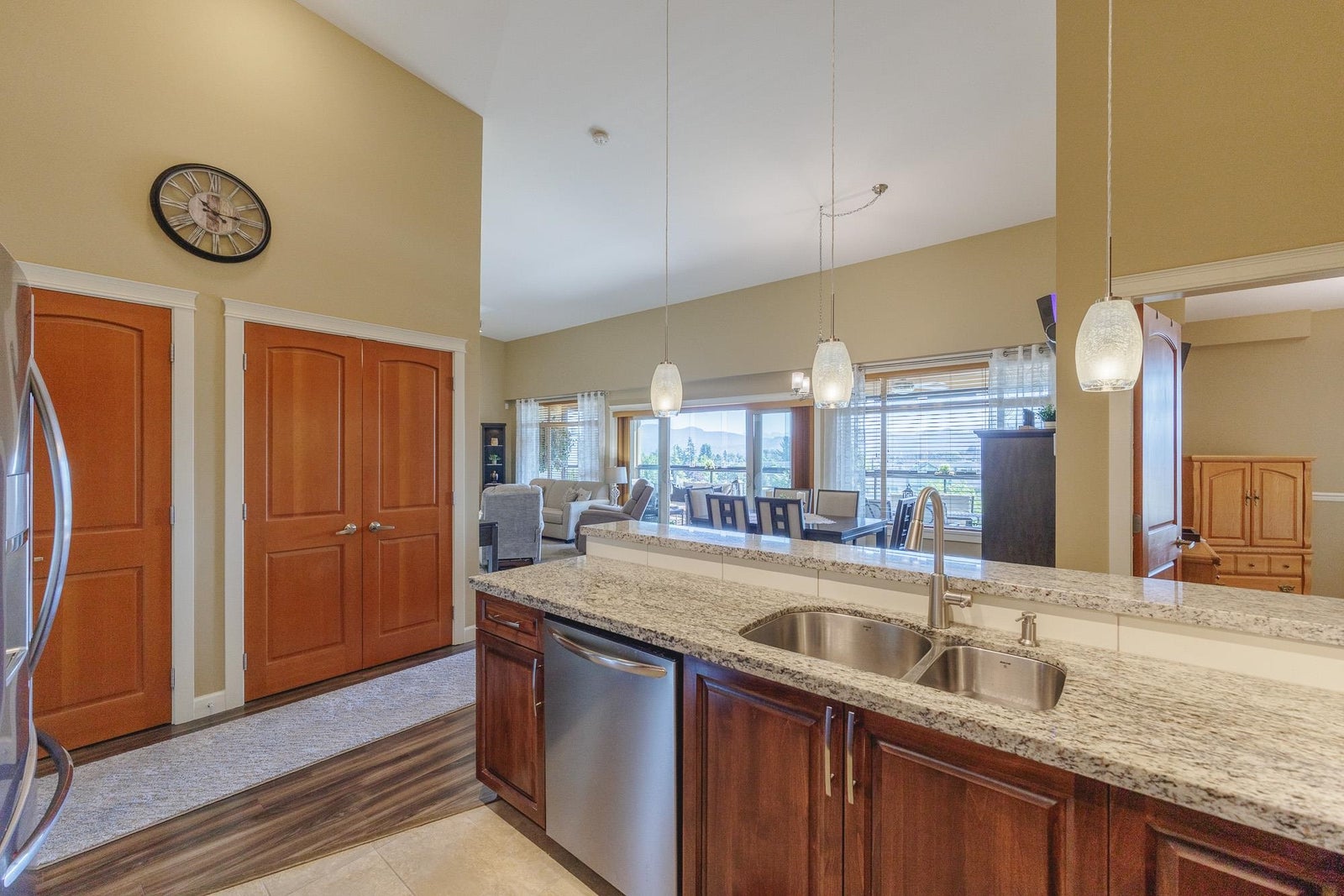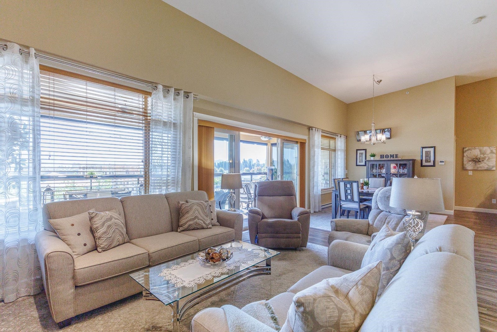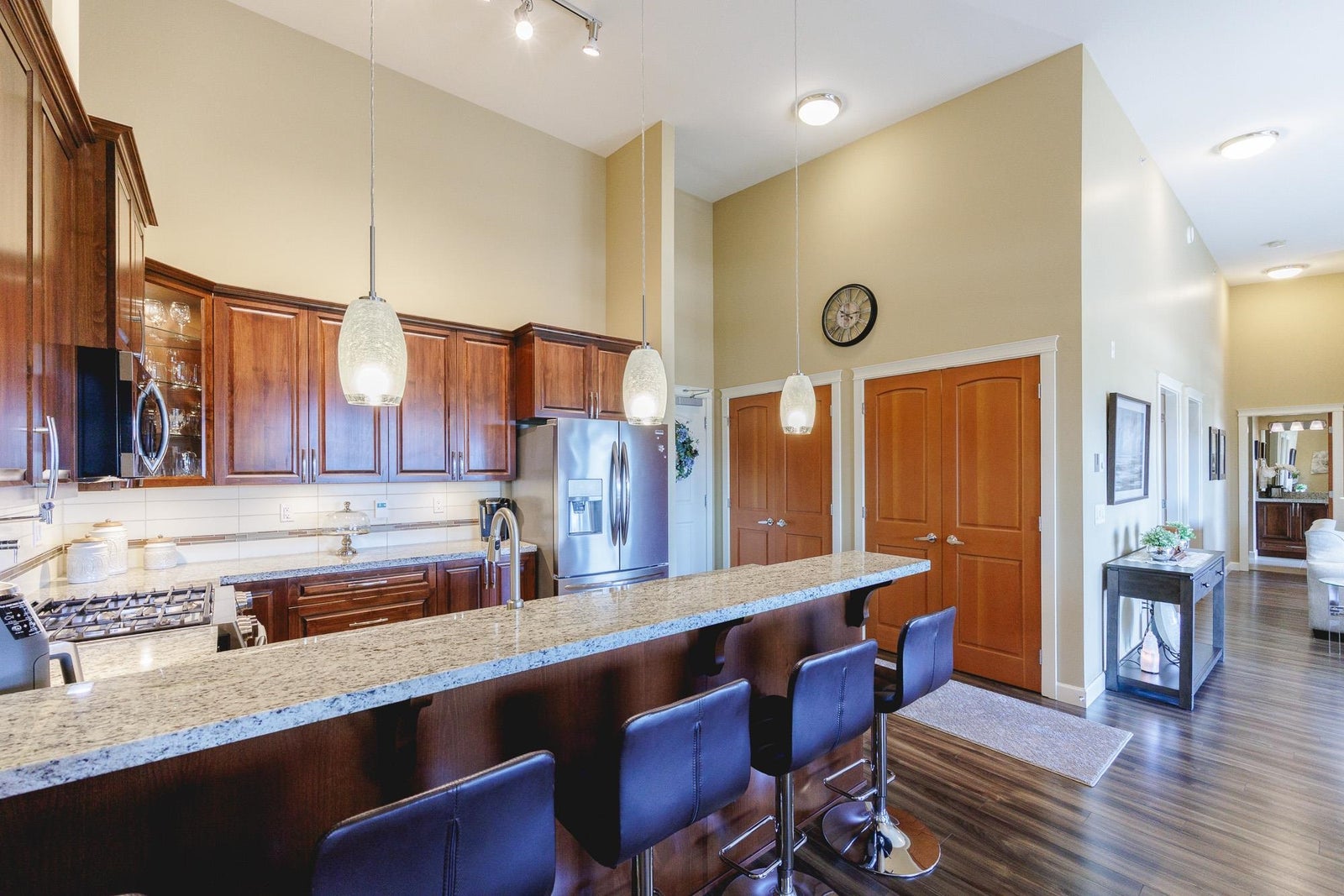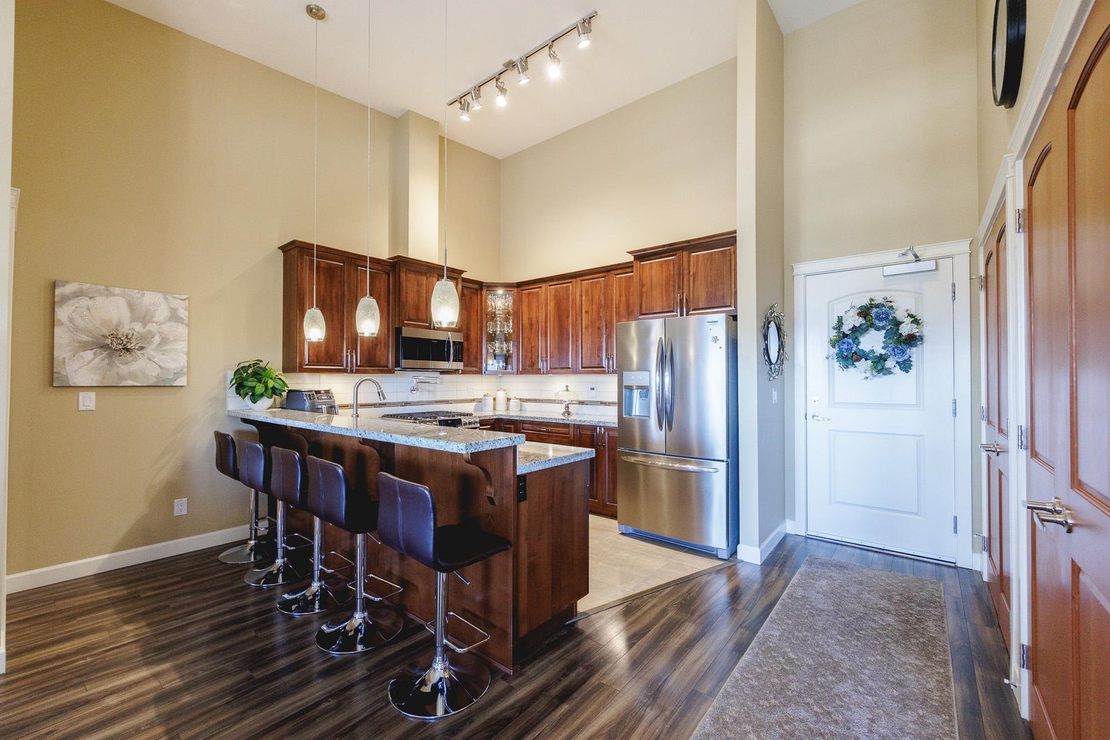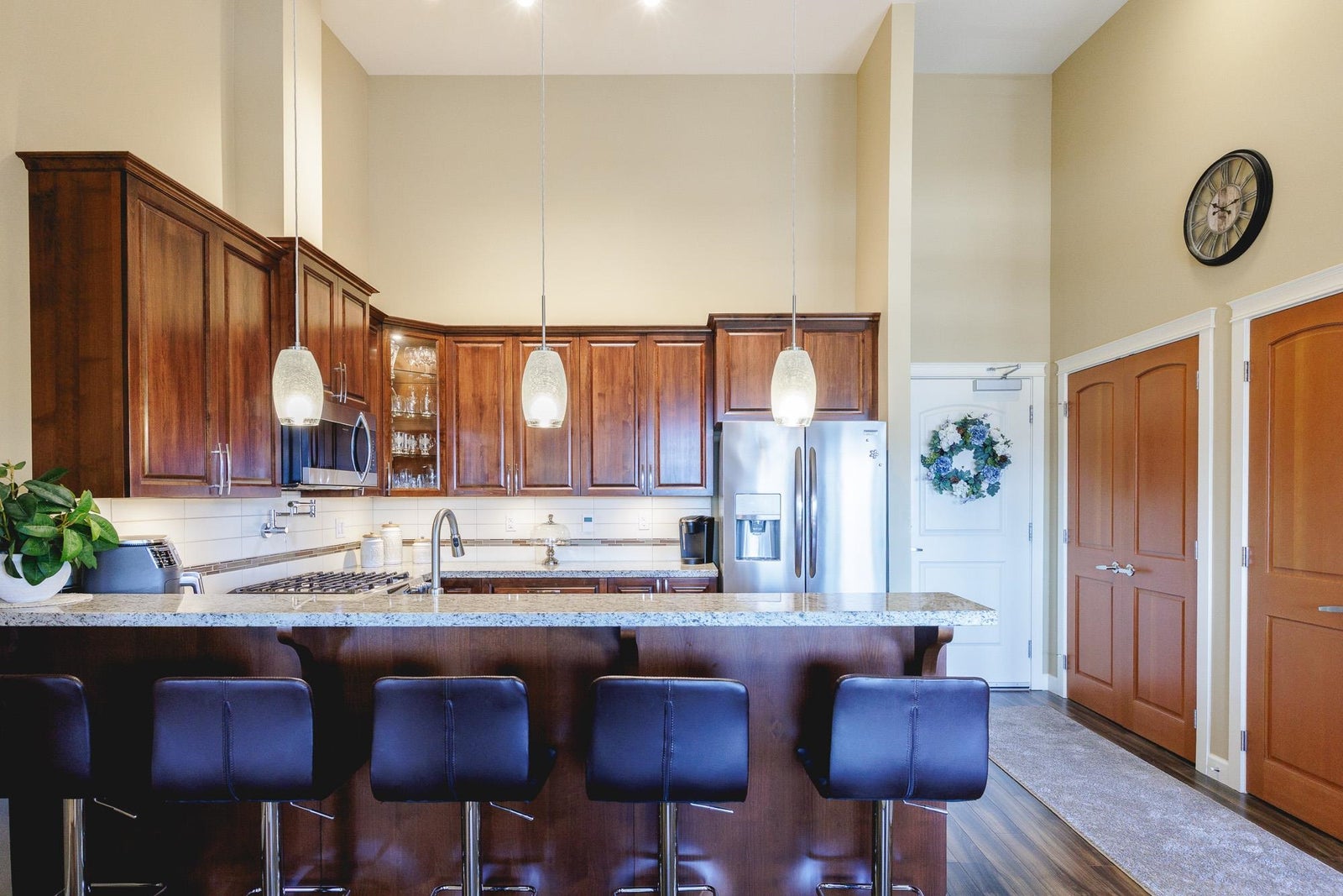 The Most desirable unit at La Galleria, available now! This is the one that everyone was standing in line for when sales started and this is your chance to own it. Top floor penthouse unit, east facing on the quiet side of the building for beautiful sunrises and views, and cool afternoon shade on your solarium with retractable glass. The home offers 1,949 total sqft of living space with 1,506 sqft in the beautiful 3 bedroom condo, and 443 sqft on the solarium. High vaulted ceilings, air conditioning, remote control blinds, heated tile floors in the kitchen and bathrooms, 3 bedrooms (or 2 plus a Den), 2 bathrooms, full laundry room with side by side washer/dryer, gas range, 2 parking stalls and a storage locker. Too many features to list! Set up your private showing before it's gone.